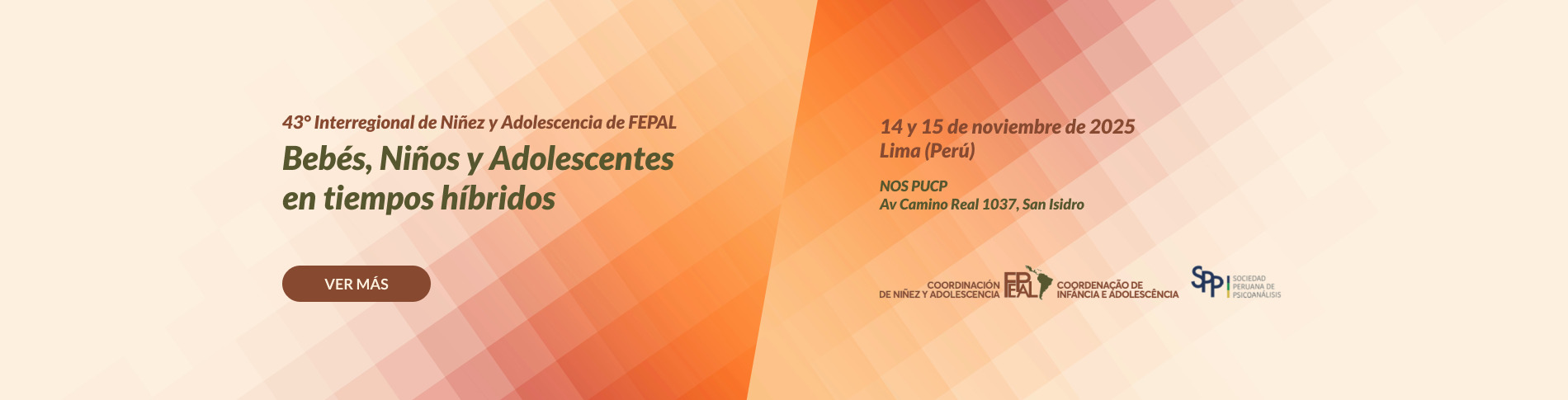 La Sociedad Peruana de Psicoanálisis (SPP) invita a la comunidad psicoanalítica y al público interesado a participar del 43º Encuentro Interregional de Niñez y Adolescencia FEPAL, un espacio de intercambio y reflexión sobre los desafíos contemporáneos que atraviesan la infancia y la adolescencia.